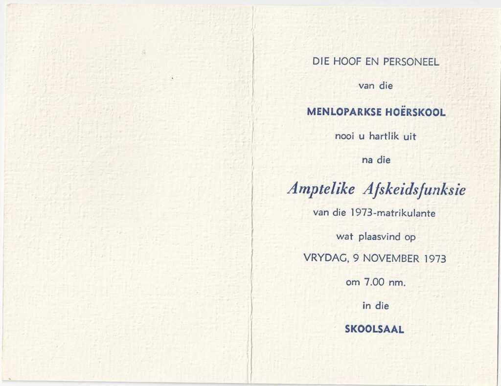 Uit die ou dae: die uitnodiging tot 1973 se matriekdans